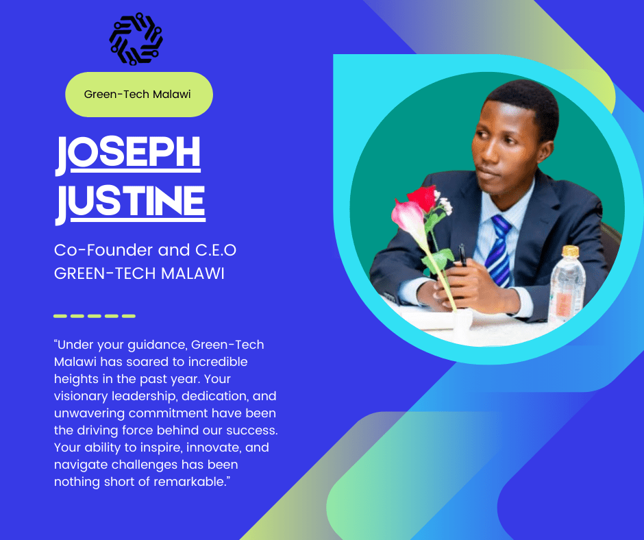 The past year has been a testament to our collective dedication, perseverance, and passion for driving sustainable change in the realm of technology and environment. Your leadership, guidance, and unwavering support have been instrumental in propelling Green-Tech Malawi to new heights of success and impact.